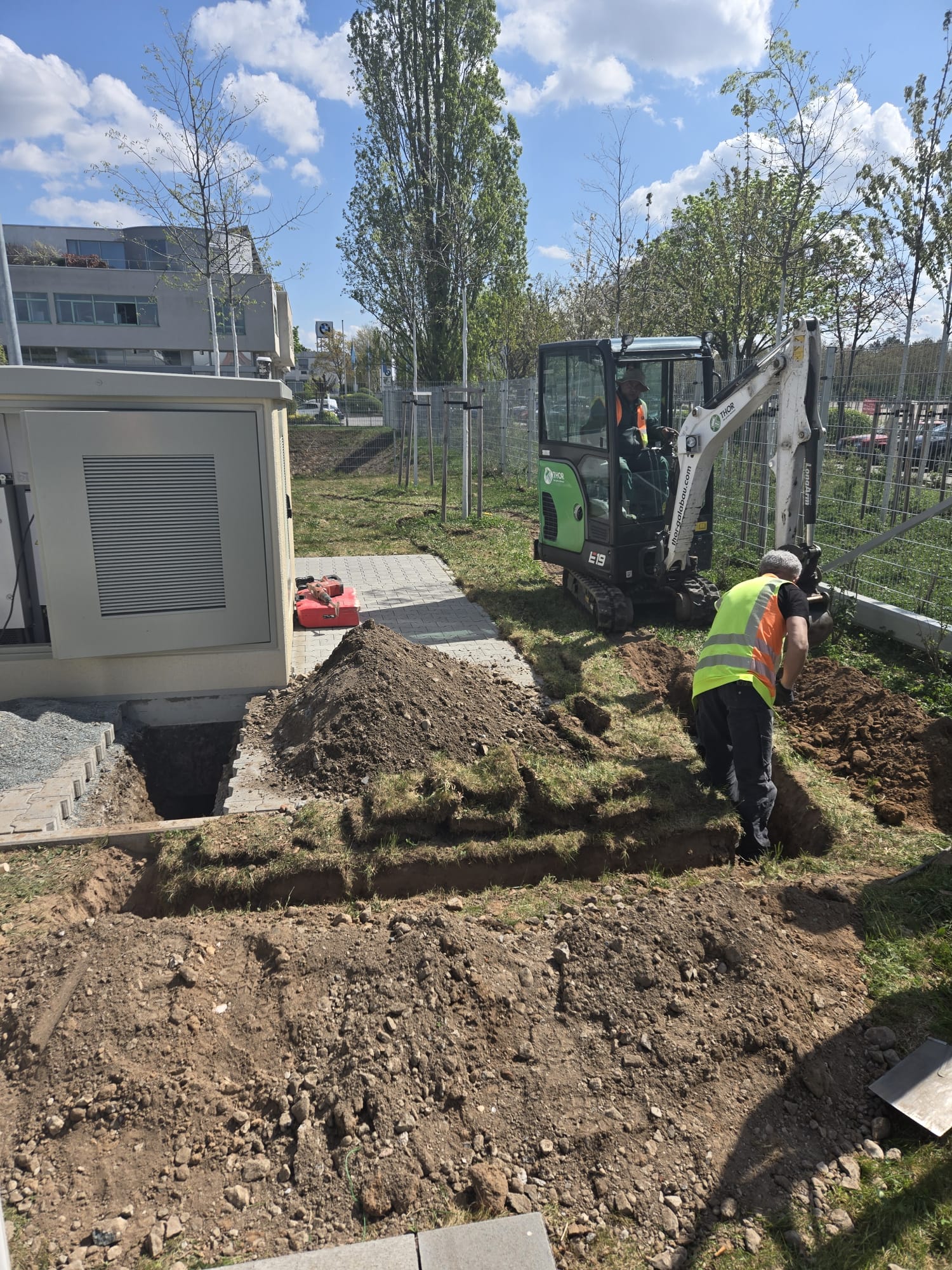 Tiefbauarbeiten am Briefzentrum Darmstadt zur Errichtung von Ladeinfrastruktur für Elektrofahrzeuge der Deutschen Post